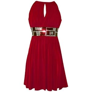 Sexy gathered goddess style stretch jersey dress with geometric design sequined waist band. Bust is lined