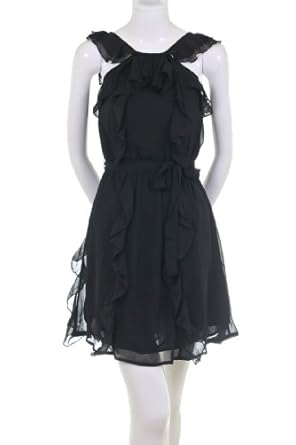 Minuet Chiffon Ruffle Empire Waist Black Dress